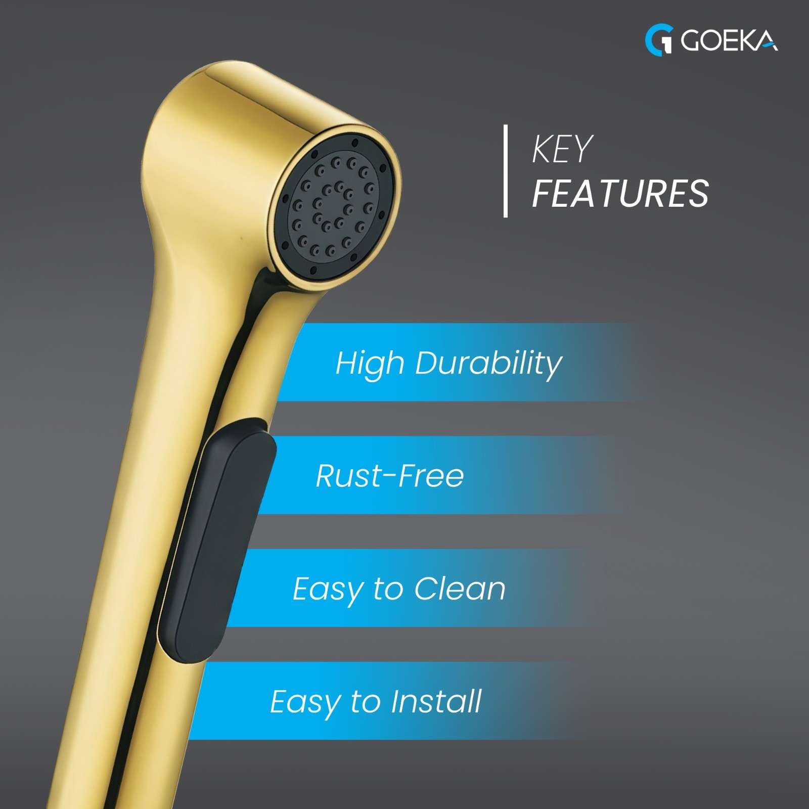 The GOEKA Axor Health Faucet features a high-quality gold plating that delivers a bold and opulent appearance. This premium gold health faucet pairs beautifully with luxury taps, showers, and bathroom fittings, making it a perfect choice for stylish homes and upscale interiors.