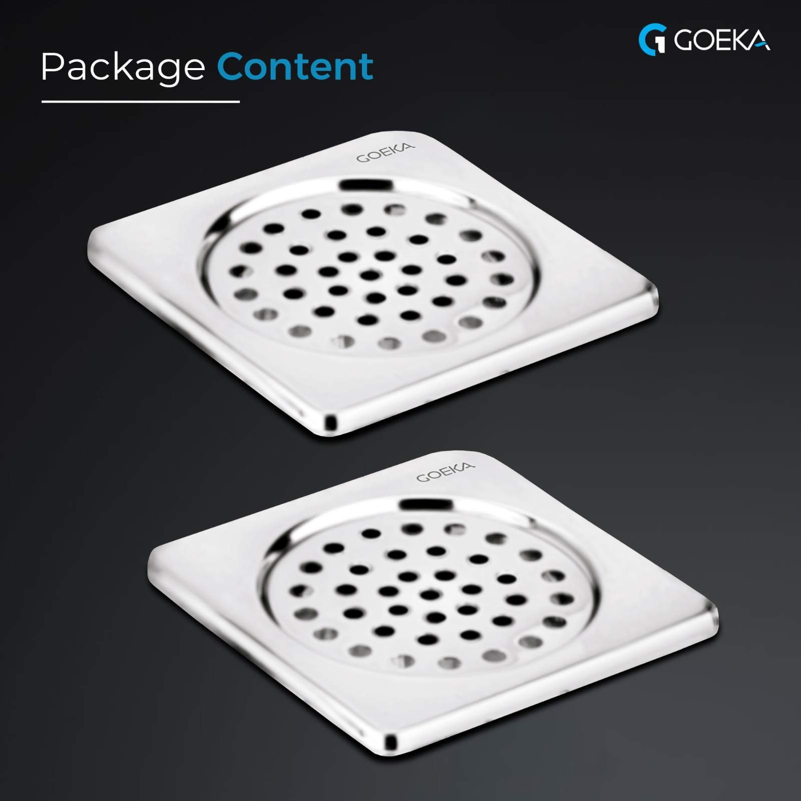 GOEKA Square Shape Grating is made from SS 304 stainless steel, features a lock grating design, and incorporates an anti-cockroach jali, ensuring rust-proof performance, smooth water flow, and hygiene in bathrooms, kitchens, and other wet areas.