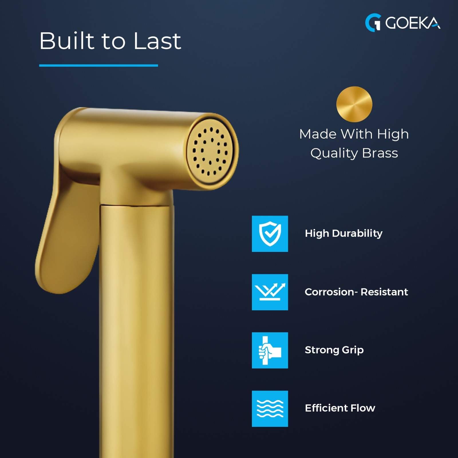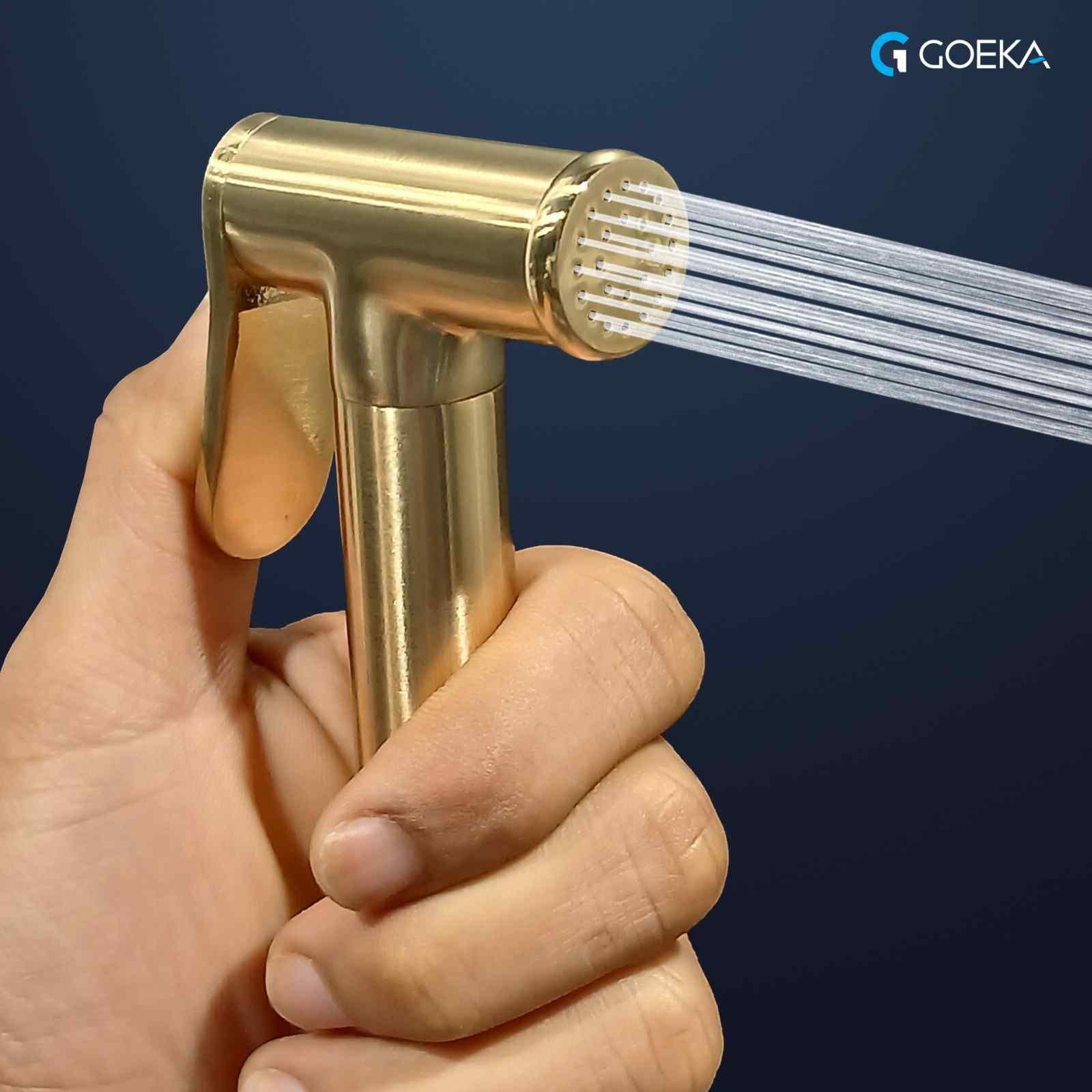 GOEKA crafted this brass health faucet for luxury homes, hotels, and restaurants. The elegant brush gold finish enhances bathroom interiors and leaves a strong impression on guests. Moreover, the solid brass construction ensures durability and smooth performance over time.